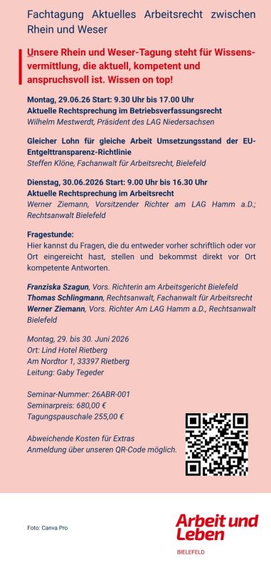 Seminartitel: BetrVG1 | Seminarbeginn: Mo., 22.06.2026 |