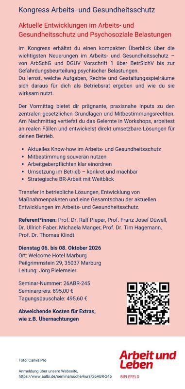 Seminartitel: BetrVG1 | Seminarbeginn: Mo., 21.09.2026 |